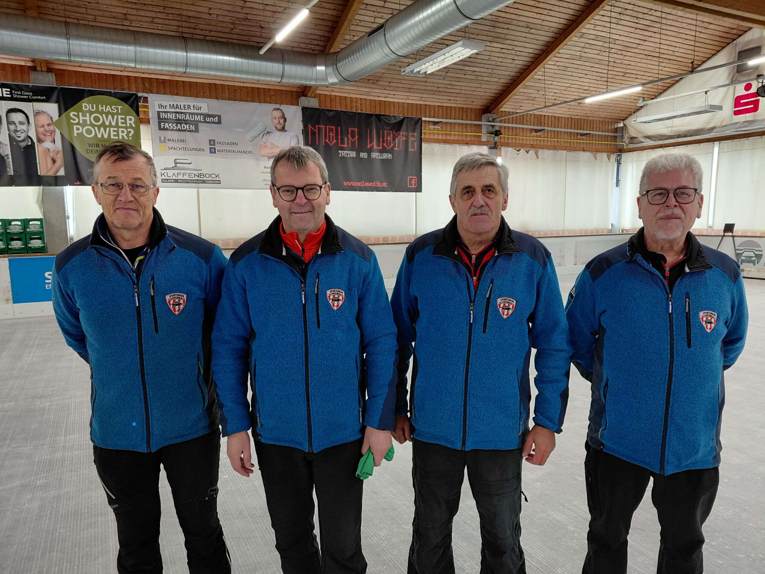 Bei der OÖ-Landesligameisterschaft am 15. November 2025 in der Eishalle in Peuerbach erreichte die Mannschaft Schweinbach 1 mit den Schützen Gottfried WALTER, Harald Lang, Johannes Minichberger und Georg Müller (v.l.n.r) in der Gruppe A den 4. Rang und somit insgesamt unter 18 Moarschaften mit dem 8. Platz souverän in der höchsten OÖ-Liga den Klassenerhalt!